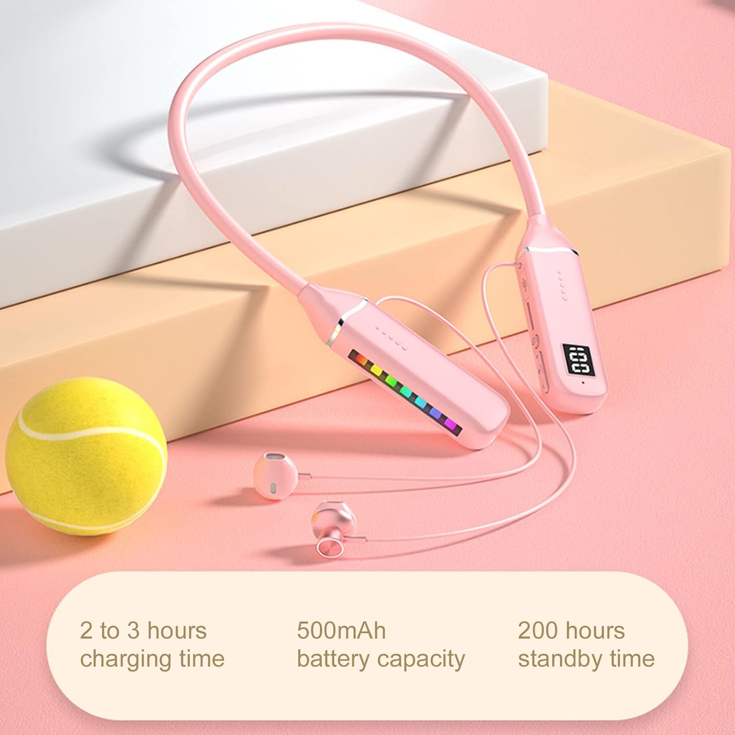 - [Long Battery Life] This wireless neckband headset built in 500mAh rechargeable lithium battery, 2 to 3H fully charged, standby time of 200 hours, no need to frequently charge the headset. With LED digital display, you can always check the headset power.